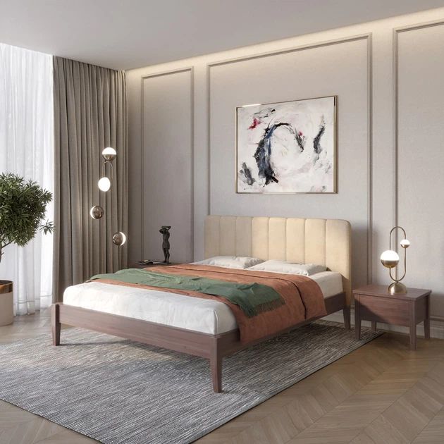 Односпальне дерев'яне ліжко Mebigrand Лондон ДК Горіх лісовий/Аляска 23 (Бежевий) Б1 90х200 см (MBG-6745)