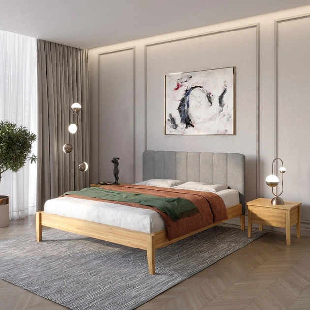 Односпальне дерев'яне ліжко Mebigrand Лондон ДК Вільха/Аляска 93 (Сірий) Б1 90х200 см (MBG-6716)