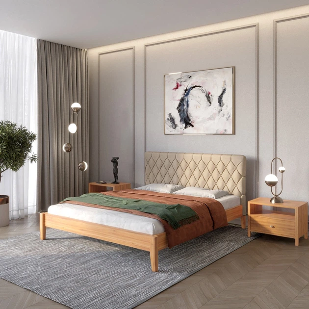 Односпальне дерев'яне ліжко Mebigrand Лондон ДК Вільха/Аляска 23 (Бежевий) Б1 90х200 см (MBG-6702)