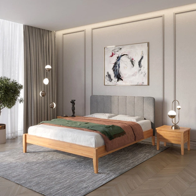 Односпальне дерев'яне ліжко Mebigrand Венеція ДК Яблуня/Аляска 93 (Сірий) 90х200 см (MBG-5440)