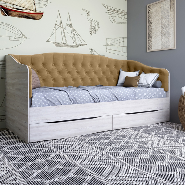 Ліжко дитяче односпальне LION Л-9 з м'якою спинкою і висувними шухлядами 190x90 см Дуб Артизан/Лілі-95 (LION-041489)
