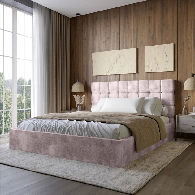 Двоспальне дерев'яне ліжко з м'яким узголів'ям і підйомним механізмом LION Піксі Silk 402 (Лотус) 160х200 см (LION-044281)