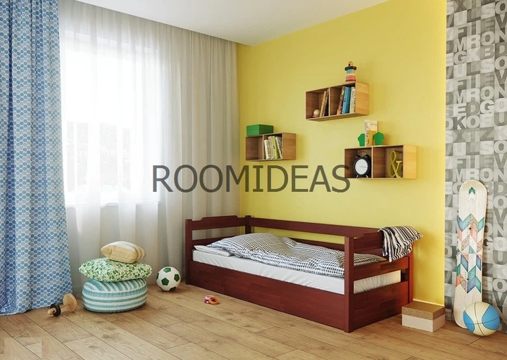 Ліжко односпальне дерев'янне з додатковою планкою Мікс Меблі Єва темний горіх 90см