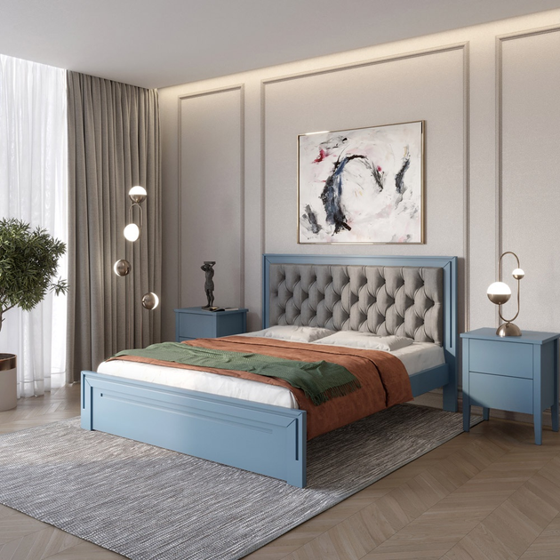 Односпальне дерев'яне ліжко Mebigrand Торонто Т4 Сіро-синій (S7010R90B)/Аляска 23 (бежевий) 80х200 см (MBG-8597)