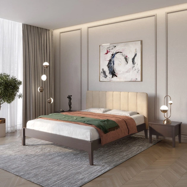 Односпальне дерев'яне ліжко Mebigrand Венеція ДК Венге/Аляска 23 (Бежевий) 90х200 см (MBG-5722)