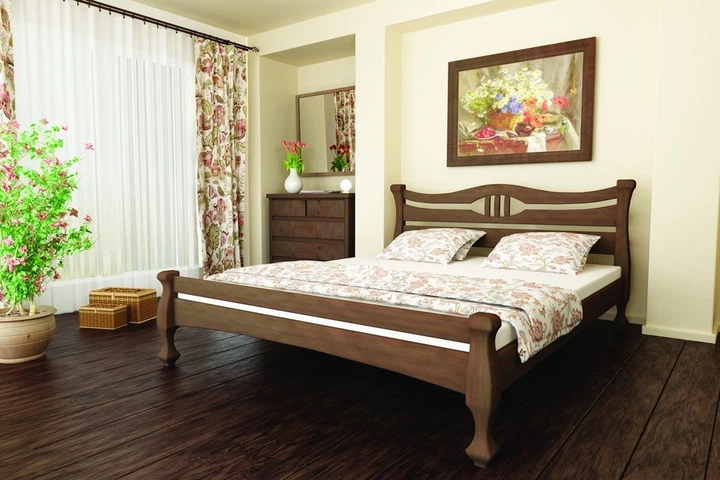 Односпальне дерев'яне ліжко Mebigrand Венеція ДК Махонь/Аляска 23 (Бежевий) 90х200 см (MBG-5666)