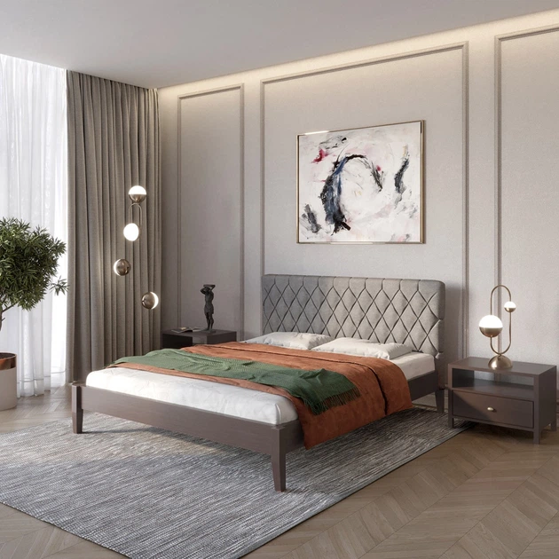 Односпальне дерев'яне ліжко Mebigrand Лондон ДК Махонь/Аляска 93 (Сірий) Б1 90х200 см (MBG-6660)