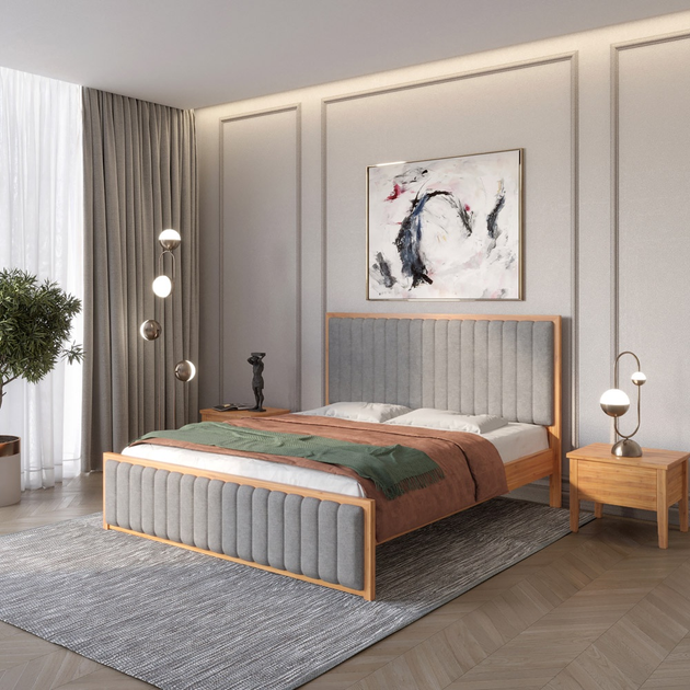 Двоспальне дерев'яне ліжко Mebigrand Відень Горіх світлий/Аляска 93 (Сірий) 180х200 см (MBG-9999)