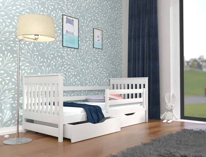 Ліжко дерев'яне дитяче з шухлядами LV 80х200 см Білий