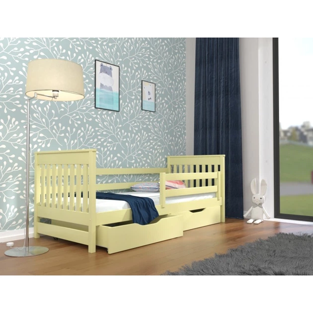 Ліжко в дитячу кімнату з натурального дерева односпальне з бортиком і ящиками ТМ ЛУНА Адель 80х200 слонова кістка (без матра