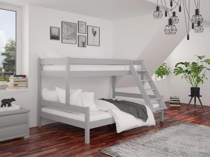 Ліжко двоярусне 140/90х200 Атланта MebiGrand RAL7040 Світло-сірий (натуральне дерево) (з ламелями/без ящиків/без матраца)