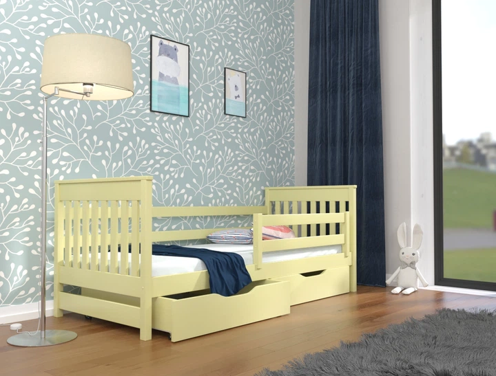 Ліжко в дитячу кімнату з натурального дерева односпальне з бортиком і ящиками ТМ ЛУНА Адель 90х200 слонова кістка (без матра