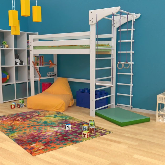 Спортивне ліжко-горище SportBaby babyson 12 з турніком і спорткомплексом біле 80x190 см (SB-3911)