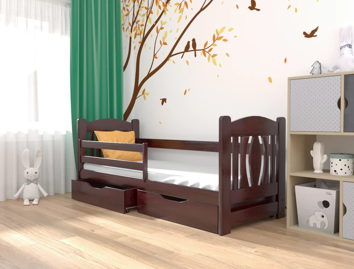 Ліжко односпальне в дитячу з натурального дерева 90х200 з бортиком та ящиками (без матраца) ТМ ЛУНА Оскар палісандр