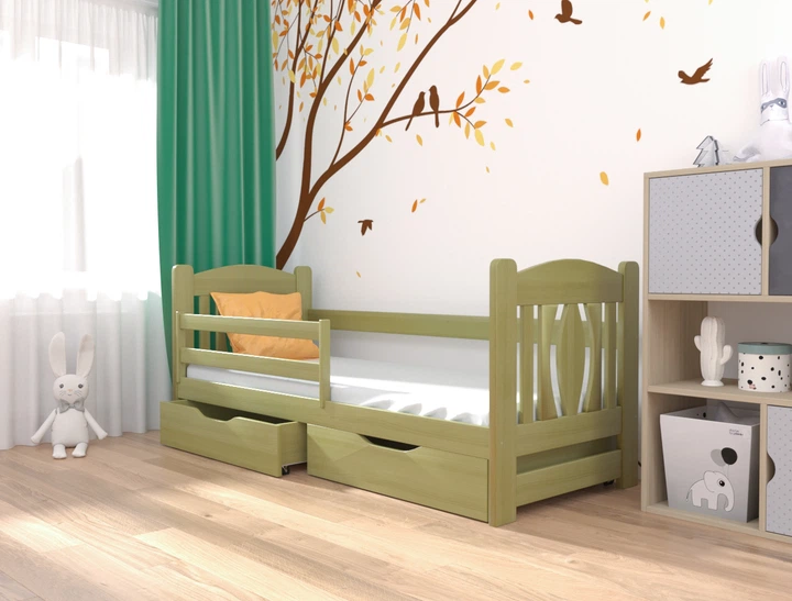 Ліжко односпальне в дитячу з натурального дерева 90х200 з бортиком та ящиками (без матраца) ТМ ЛУНА Оскар хаккі