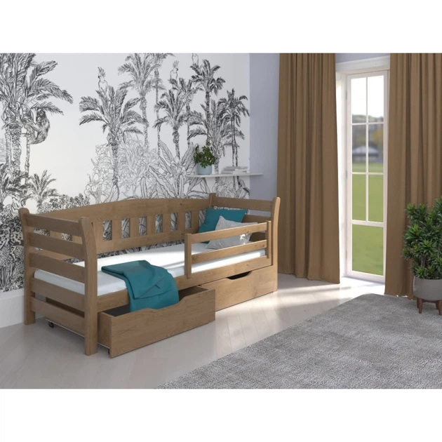 Ліжко односпальне з додатковим спальним місцем з натурального дерева 80х160 (без матраца) Тедді Duo ТМ ЛУНА горіх світлий