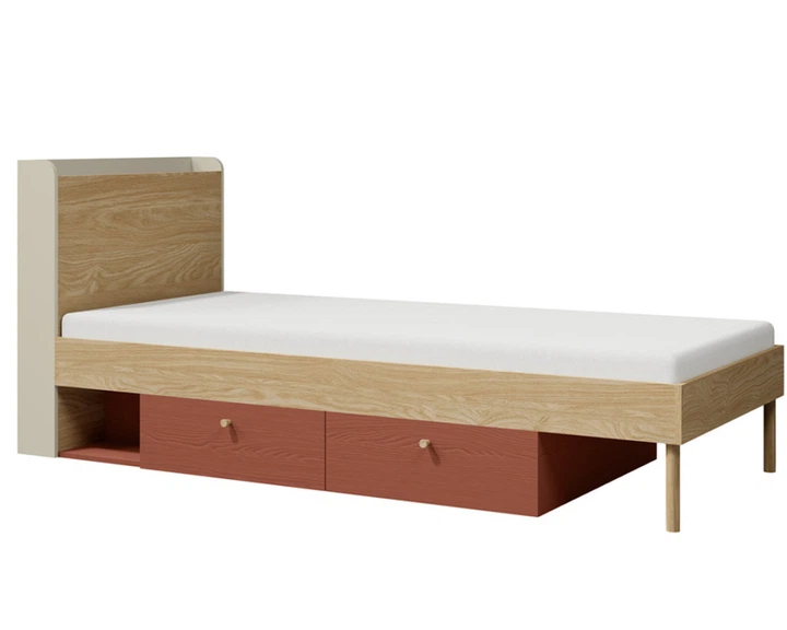 Ліжко односпальне YUKI REG 13 94х93х217 сірий / бежевий / дуб / коньяк Jurek