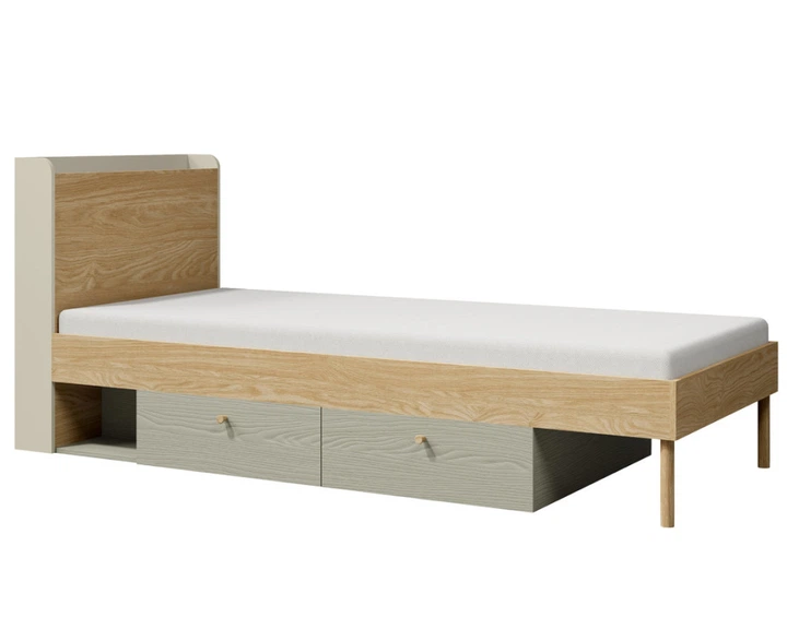 Ліжко односпальне YUKI REG 13 94х93х217 сірий / бежевий / дуб / евкаліпт Jurek