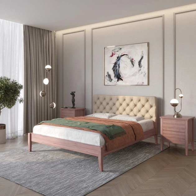 Односпальне дерев'яне ліжко Mebigrand Рим ДК Горіх лісовий/Аляска 23 (Бежевий) Б3 90х200 см (MBG-)