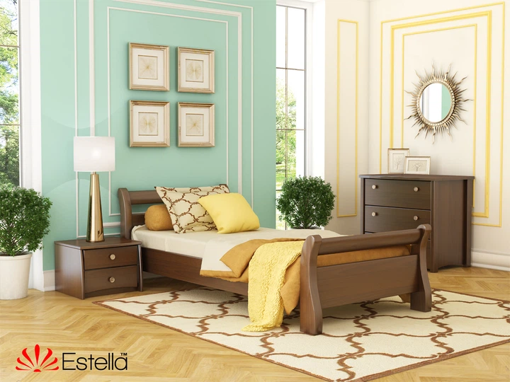 Ліжко односпальне 90х200 дерев'яна Estella Діана Горіх Темний (Щит-101) Л4