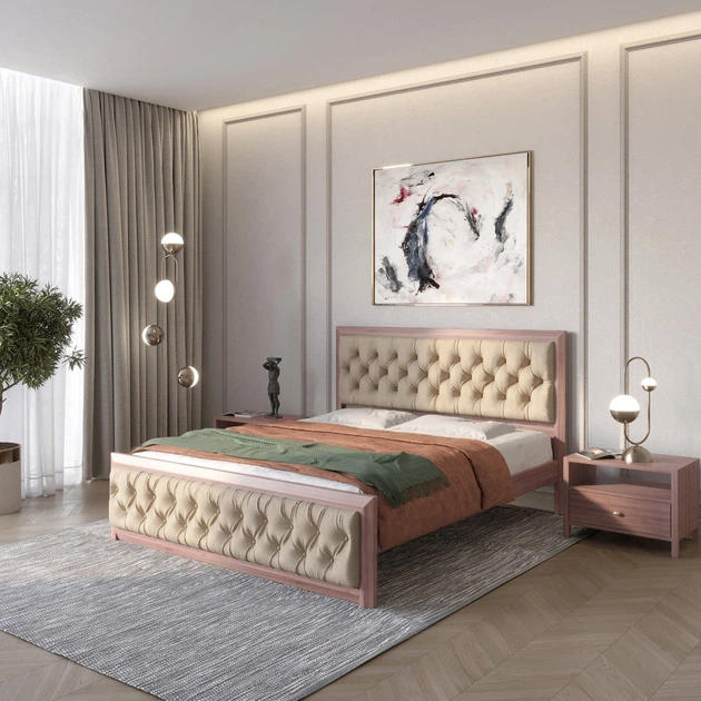 Двоспальне дерев'яне ліжко Mebigrand Барселона Б4 Горіх темний/Аляска 23 (Бежевий) 160х200 см (MBG-12873)