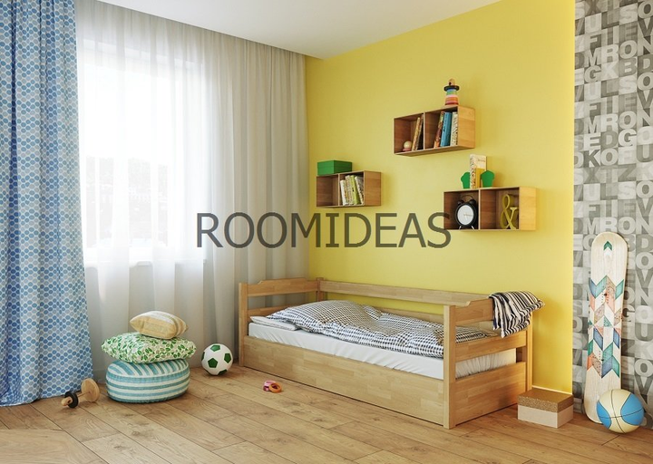 Ліжко односпальне в спальню з масиву бука з бортиком і ящиками 80х200 Моллі Дрімка