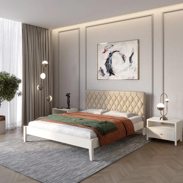 Односпальне дерев'яне ліжко Mebigrand Лондон ДК Білий (RAL9003)/Аляска 23 (Бежевий) Б1 90х200 см (MBG-6870)
