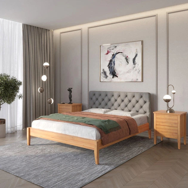 Односпальне дерев'яне ліжко Mebigrand Лондон ДК Бежевий (S2005Y50R)/Аляска 93 (Сірий) Б1 90х200 см (MBG-6688)