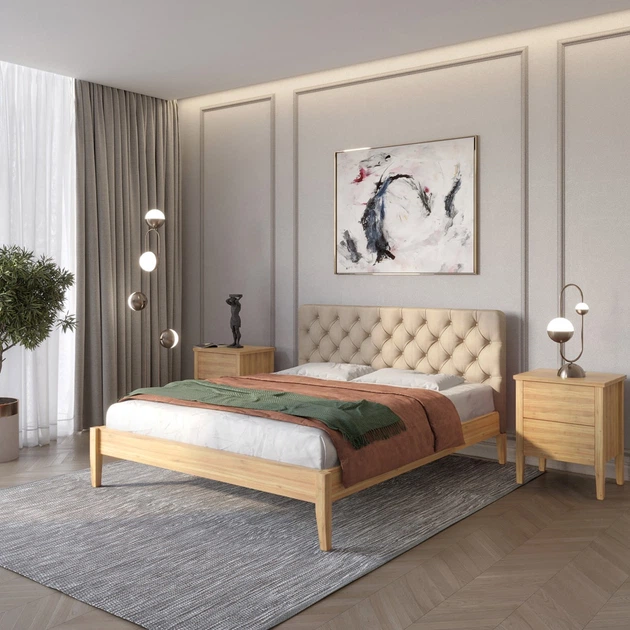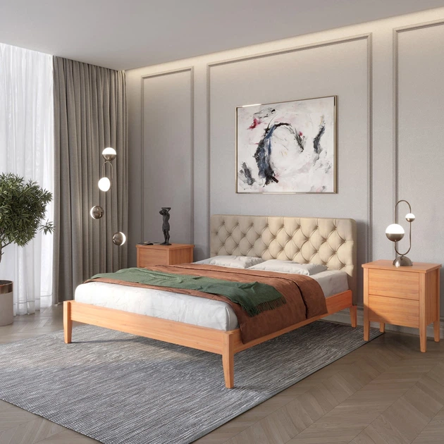 Односпальне дерев'яне ліжко Mebigrand Рим ДК Вільха/Аляска 23 (Бежевий) Б3 90х200 см