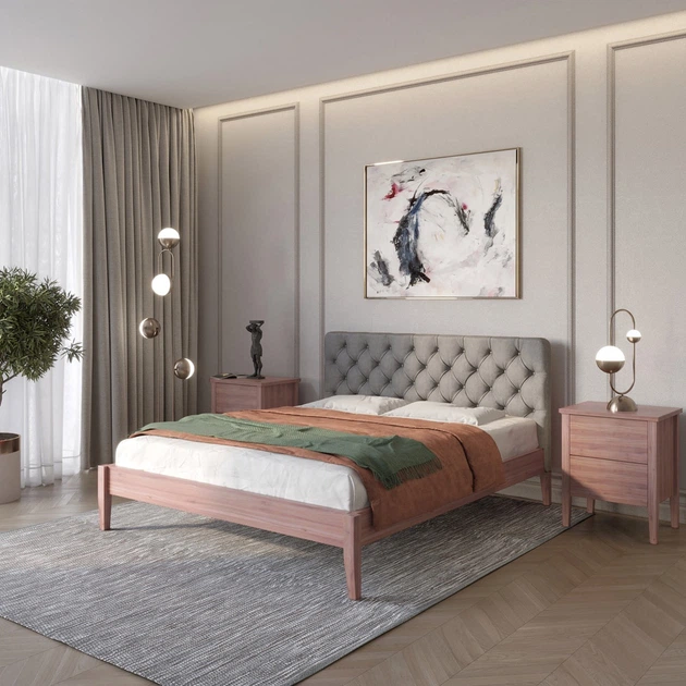 Односпальне дерев'яне ліжко Mebigrand Рим ДК Горіх лісовий/Аляска 93 (Сірий) Б3 90х200 см (MBG-)