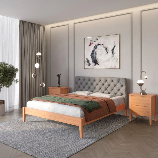 Односпальне дерев'яне ліжко Mebigrand Венеція ДК Бежевий (S2005Y50R)/Аляска 93 (Сірий) 90х200 см (MBG-5591)