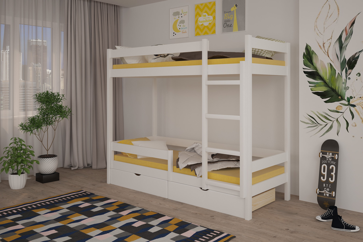 Ліжко двоярусне 80х200 Атланта Міні MebiGrand Білий (натуральне дерево) (з ламелями/з ящиками/без матраца)