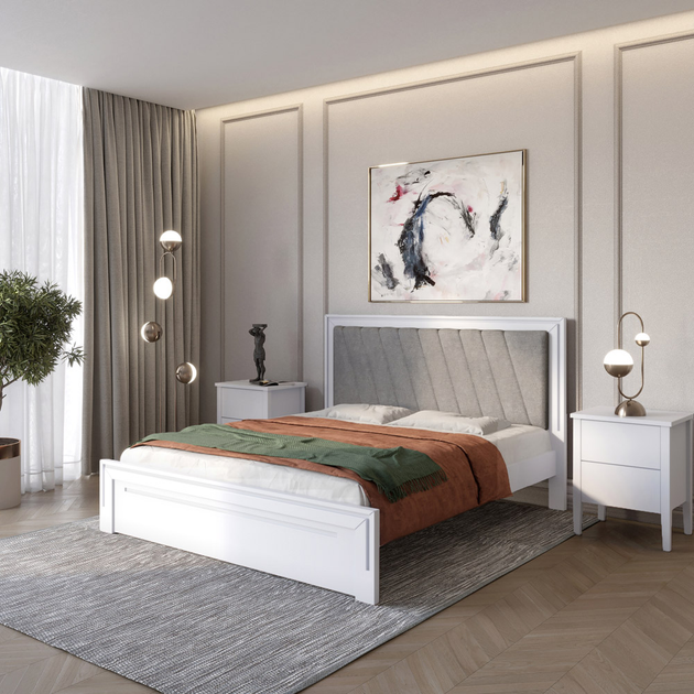 Односпальне дерев'яне ліжко Mebigrand Торонто Т5 Айворі (S0505Y30R)/Аляска 93 (сірий) 90х190 см (MBG-9101)