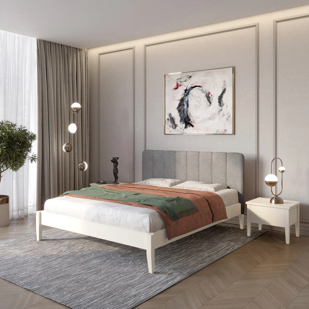 Односпальне дерев'яне ліжко Mebigrand Венеція ДК Айворі (S0505Y30R)/Аляска 93 (Сірий) 90х200 см (MBG-5577)