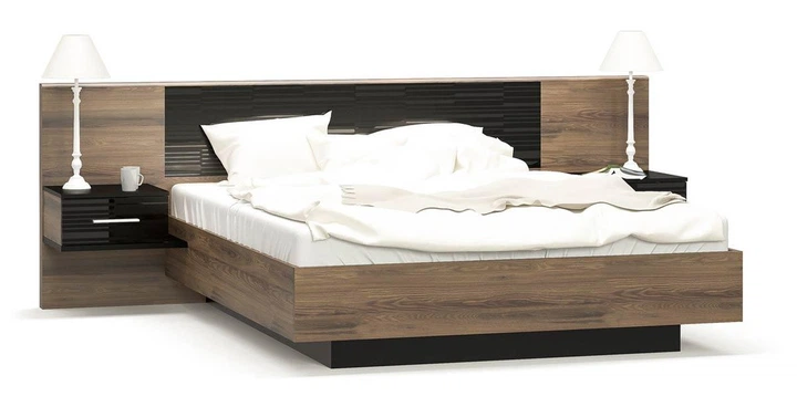 Ліжко двоспальне з тумбочками Меблі-Сервіс Фієста 160 (без ламелей) Дуб апріл + Чорний