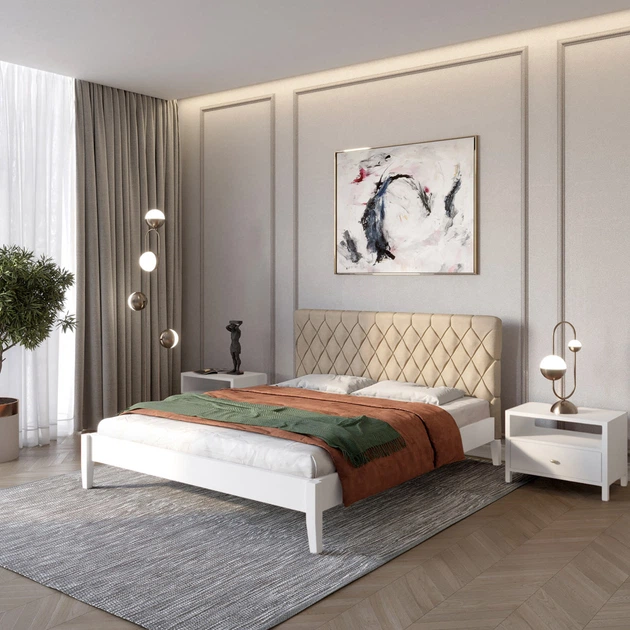 Односпальне дерев'яне ліжко Mebigrand Венеція ДК Білий (RAL9003)/Аляска 23 (Бежевий) 90х200 см (MBG-5778)