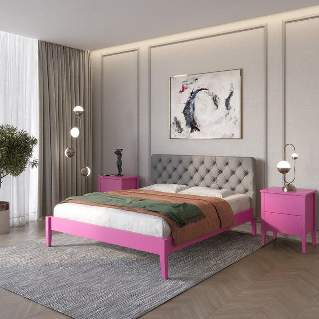 Полуторне дерев'яне ліжко Mebigrand Рим ДК Рожевий (S2060R30B)/Аляска 93 (Сірий) Б3 120х200 см (MBG-5299)