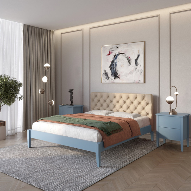 Полуторне дерев'яне ліжко Mebigrand Рим ДК Сіро-синій (S7010R90B)/Аляска 23 (Бежевий) Б3 120х200 см