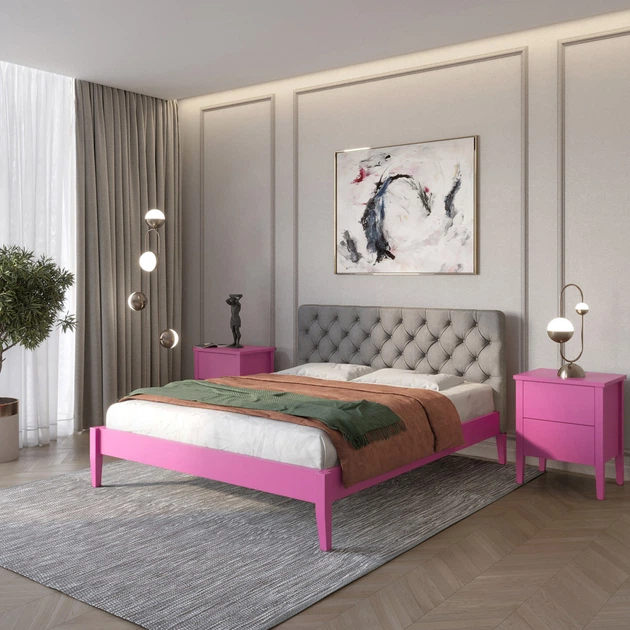 Односпальне дерев'яне ліжко Mebigrand Рим ДК Рожевий (S2060R30B)/Аляска 93 (Сірий) Б3 80х190 см (MBG-5292)