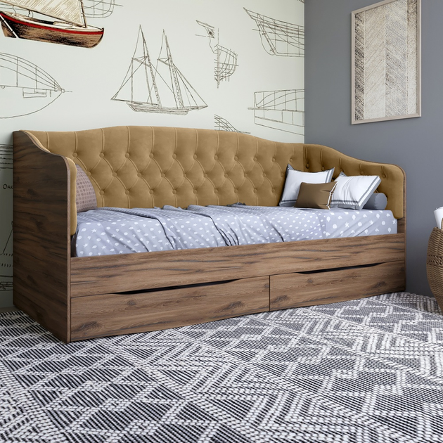 Ліжко дитяче односпальне LION Л-9 з м'якою спинкою і висувними шухлядами 190x90 см Дуб Ліворно/Лілі-95 (LION-041490)