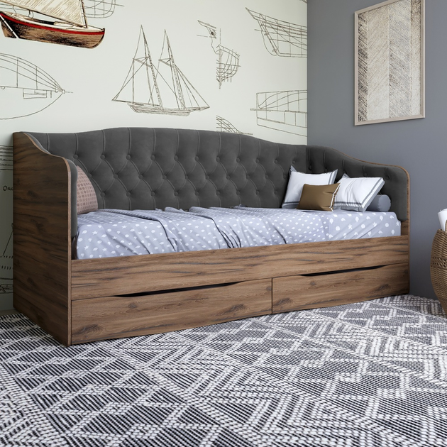 Ліжко дитяче односпальне LION Л-9 з м'якою спинкою і висувними шухлядами 190x90 см Бетон темний/Лілі-02 (LION-041471)