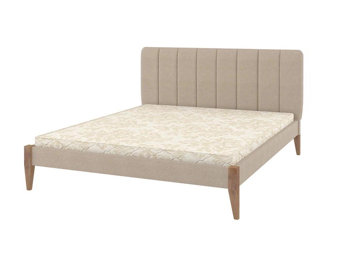 Ліжко двоспальне з м'яким узголів'ям Лондон ТК 160х200 MebiGrand Горіх світлий/Бежевий (натуральне дерево/тканина Аляска 23)