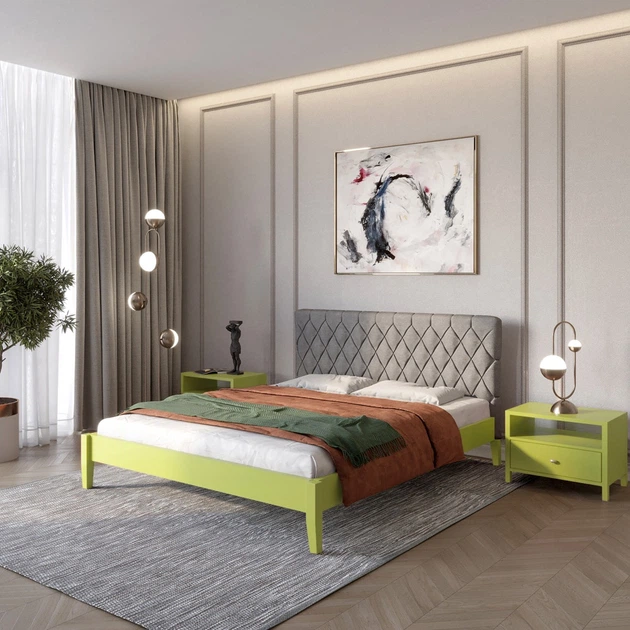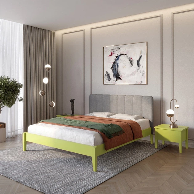 Двоспальне дерев'яне ліжко Mebigrand Венеція ДК Оливковий (RAL1020)/Аляска 93 (Сірий) 180х190 см (MBG-5598)