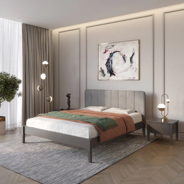 Двоспальне дерев'яне ліжко Mebigrand Венеція ДК Лайм (S3050G70Y)/Аляска 93 (Сірий) 180х190 см (MBG-5612)