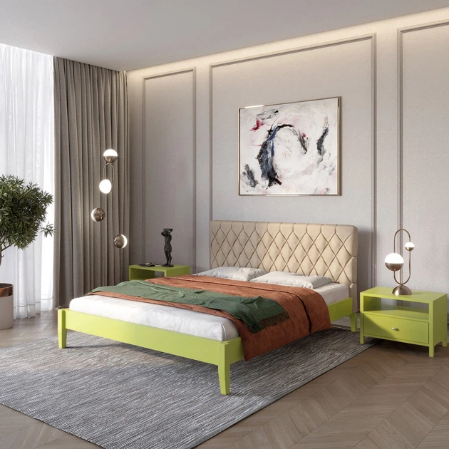 Двоспальне дерев'яне ліжко Mebigrand Лондон ДК Оливковий (RAL1020)//Аляска 23 (Бежевий) Б1 180х190 см (MBG-6823)