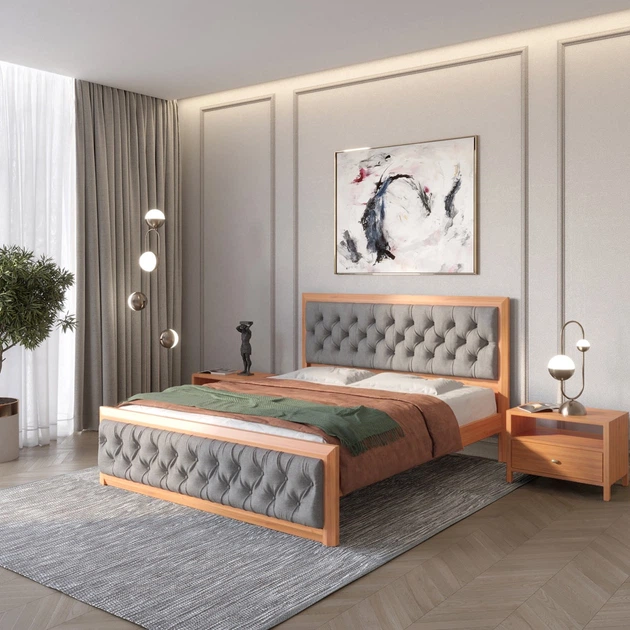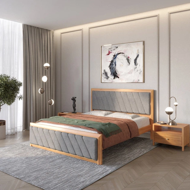 Двоспальне дерев'яне ліжко Mebigrand Барселона Б5 Горіх світлий/Аляска 93 (Сірий) 180х200 см (MBG-14159)