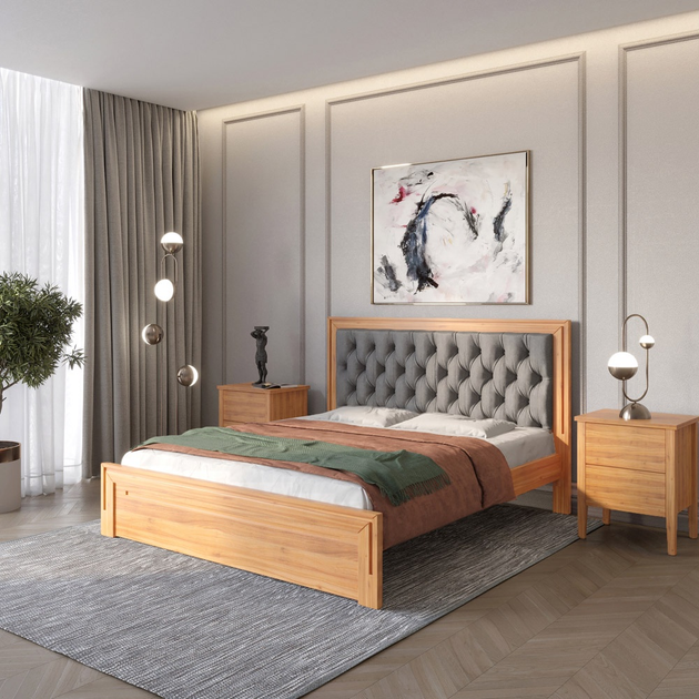 Полуторне дерев'яне ліжко Mebigrand Торонто Т2 Горіх світлий/Аляска 93 (сірий) 120х200 см (MBG-10022)