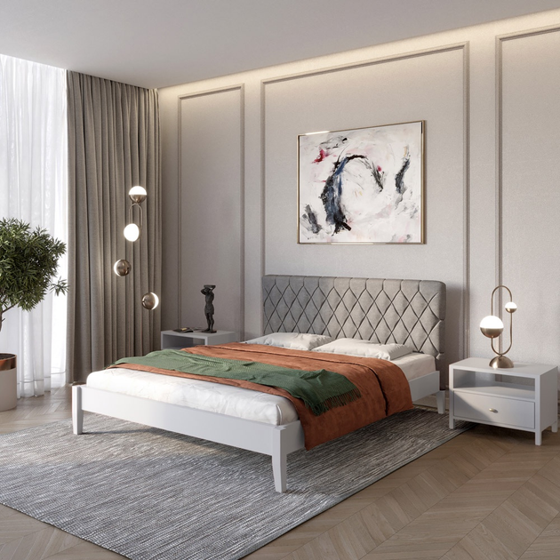 Двоспальне дерев'яне ліжко Mebigrand Венеція ДК Білий (RAL9003)/Аляска 93 (Сірий) 180х200 см (MBG-5516)