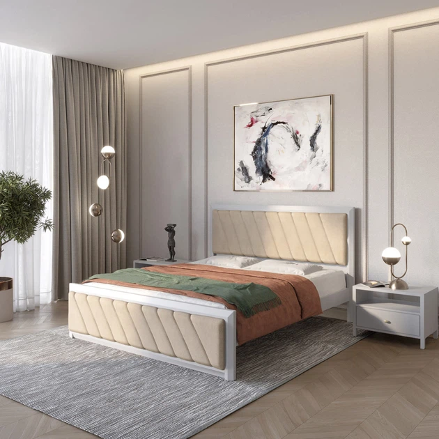 Двоспальне дерев'яне ліжко Mebigrand Барселона Б4 Білий (RAL9003)/Аляска 23 (Бежевий) 160х200 см (MBG-12921)