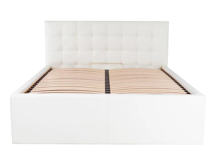 Двоспальне ліжко з масиву дуба Сан-Ремо 140х190 з підйомним механізмом Біла емаль Крок ламелів 4,5 см.